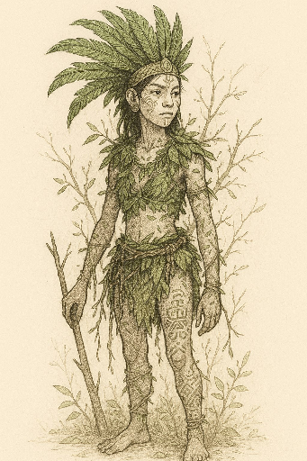 At the age of five, disaster struck. A group of Pharic slavers, arriving with large sailing ships, raided his tribe. The Nuqanchik fought valiantly, but the slavers overwhelmed them. In the chaos of the attack, Itzelcoatl was separated from his people and fled into the jungle. For days, he wandered, lost and terrified. When he finally found his way back to the tribe’s encampment, it was a scene of devastation: the camp was abandoned, plundered, and stained with the blood of the fallen. Crushed by despair and overwhelmed by grief, Itzelcoatl lay down among the wreckage, ready to die.